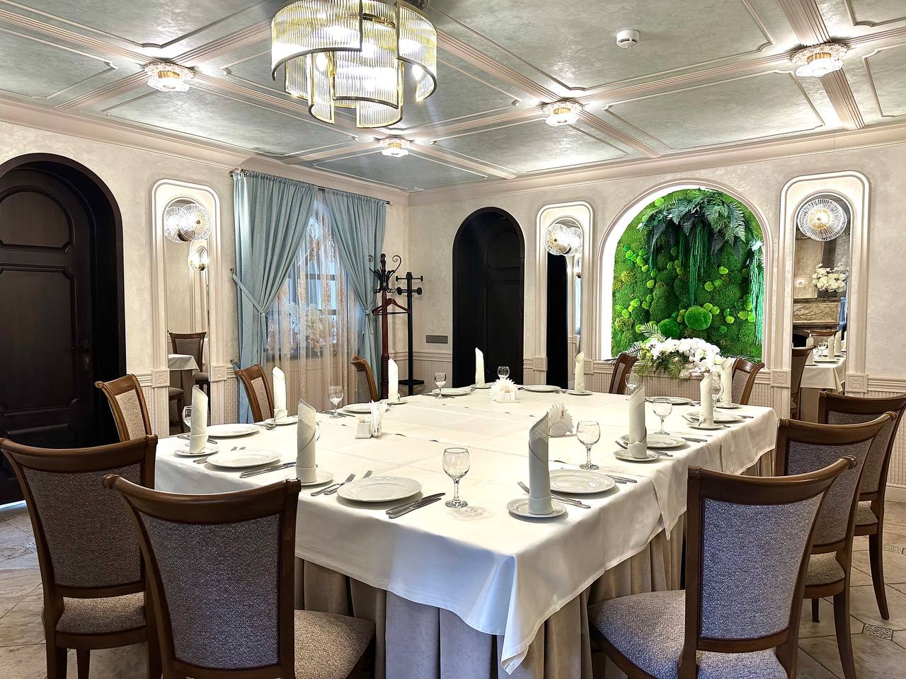 Как бы хорошо ни был украшен зал в ресторане в стиле модерн, он никогда не сможет создать ощущение торжественности и праздника, которое царит в старинных классических интерьерах. Если вы хотите побаловать себя и удивить гостей обстановкой настоящей роскоши и старины, заказывайте столик или целый зал в ресторане «Замок Зеваны».